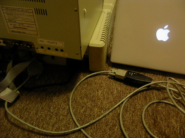 This serial card turns out to be a hell of a lot of fun. I've been able to attach to either the Applesoft prompt or the ROM prompt from a PC. I've been able to use Keyspan's USB->serial adapter to attach the iBook to the ][+ in the same way. I've attached the ][+ to a PC and then ssh'd into the PC from the iBook and accessed the ][+ via minicom. It's crazy. Attaching the iBook to the Apple ][+ gave me no end of giggles. Something about connecting leading edge Apple to vintage Apple. Photos are coming.
